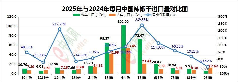 2025.8辣椒干:进口椒同比增加明显,压力仍存!新