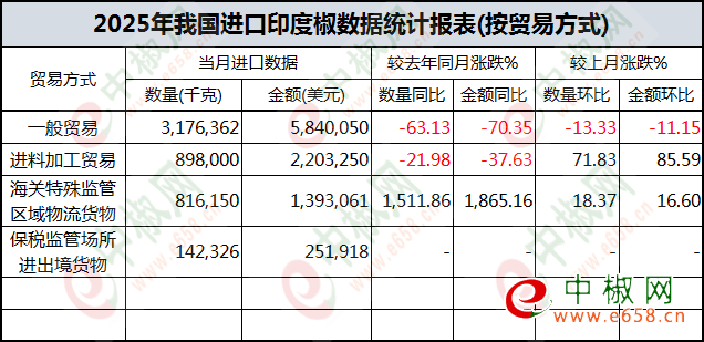 2025年10月印度椒进口数据(按贸易方式)新
