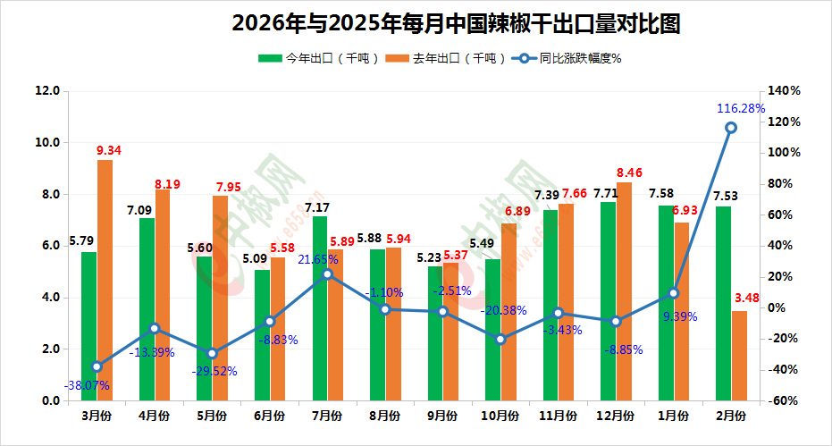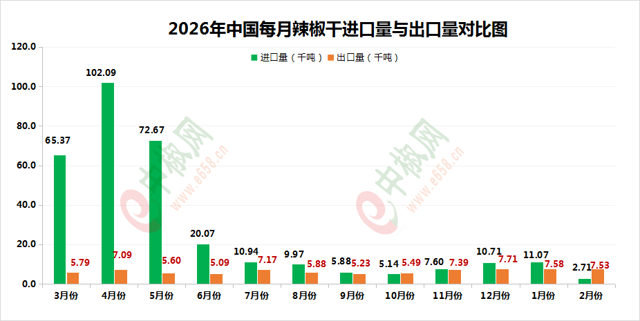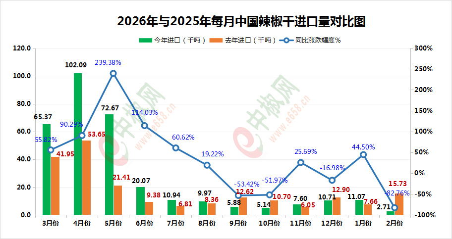2026.2辣椒干:进口环比、同比大幅缩水!