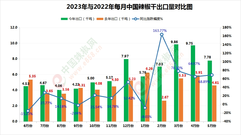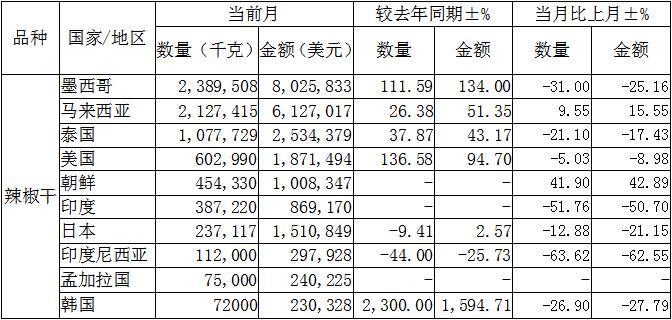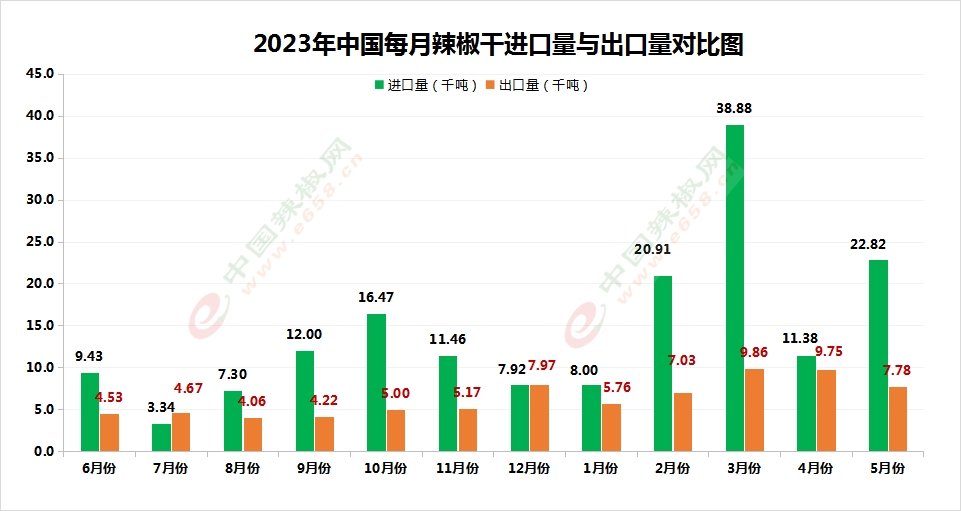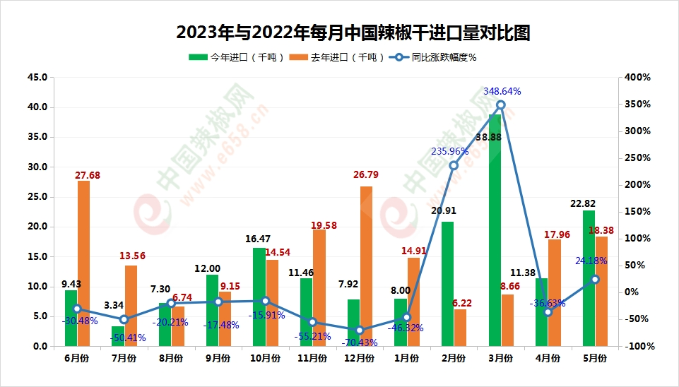 2023.5辣椒干:印度椒进口量较上月翻倍