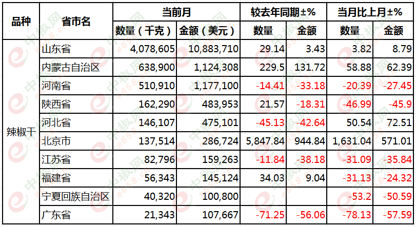 2024.08辣椒干:印度椒进口量同比、环比双增