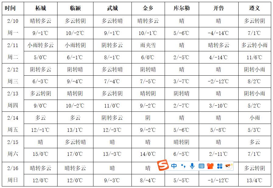 未来一周(2月10-16日),江汉南部、江南、四川盆地东部及贵州东部、西藏东部、广西北部等地累计降水量有20~40毫米,其中江南北部和西部及贵州东部、广西北部等地的部分地区有50~70毫米、局部100毫米左右;上述大部地区降水量较常年同期明显偏多,我国其余大部降水较常年偏少或接近常年。